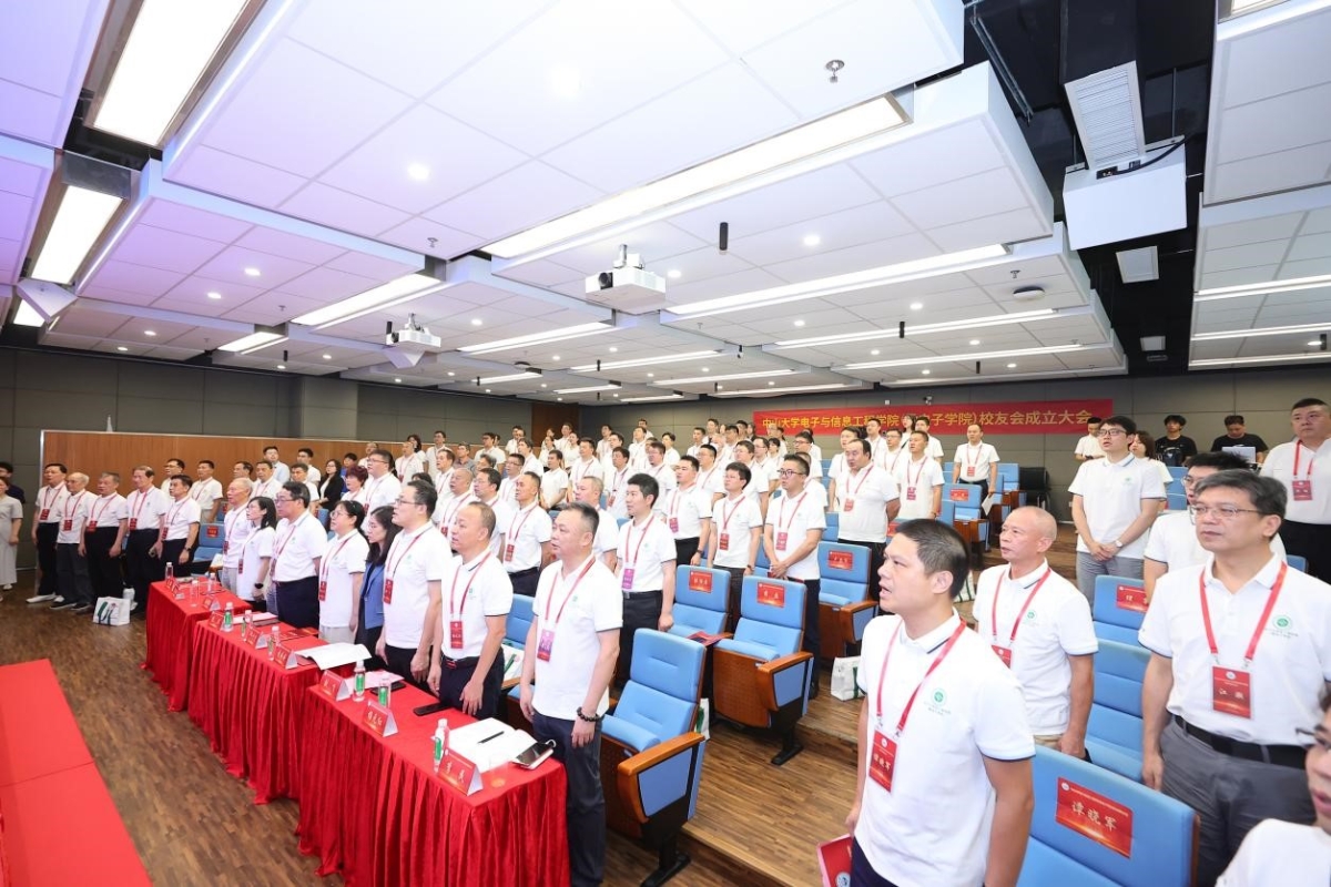 6月10日下午,赌博软件-在线赌博app 校友会成立大会暨第一届校友会第一次会议隆重召开。学校教育发展与校友事务办公室副主任黄婷婷,原电子系副书记吴猛老师等老领导,粤芯半导体总裁陈卫、广州未名中智教育科技有限公司总经理李民等来自全国各地的校友代表,原学院院长、现任学校信息学部主任、光电材料与技术国家重点实验室主任邓少芝教授等学院前领导,学院院长佘峻聪教授,学院党委书记刘飞教授,以及学院师生代表共100余人参加大会。学院党委副书记李敏智、学院校友会第一届理事会会长李民分别主持大会各项议程。
